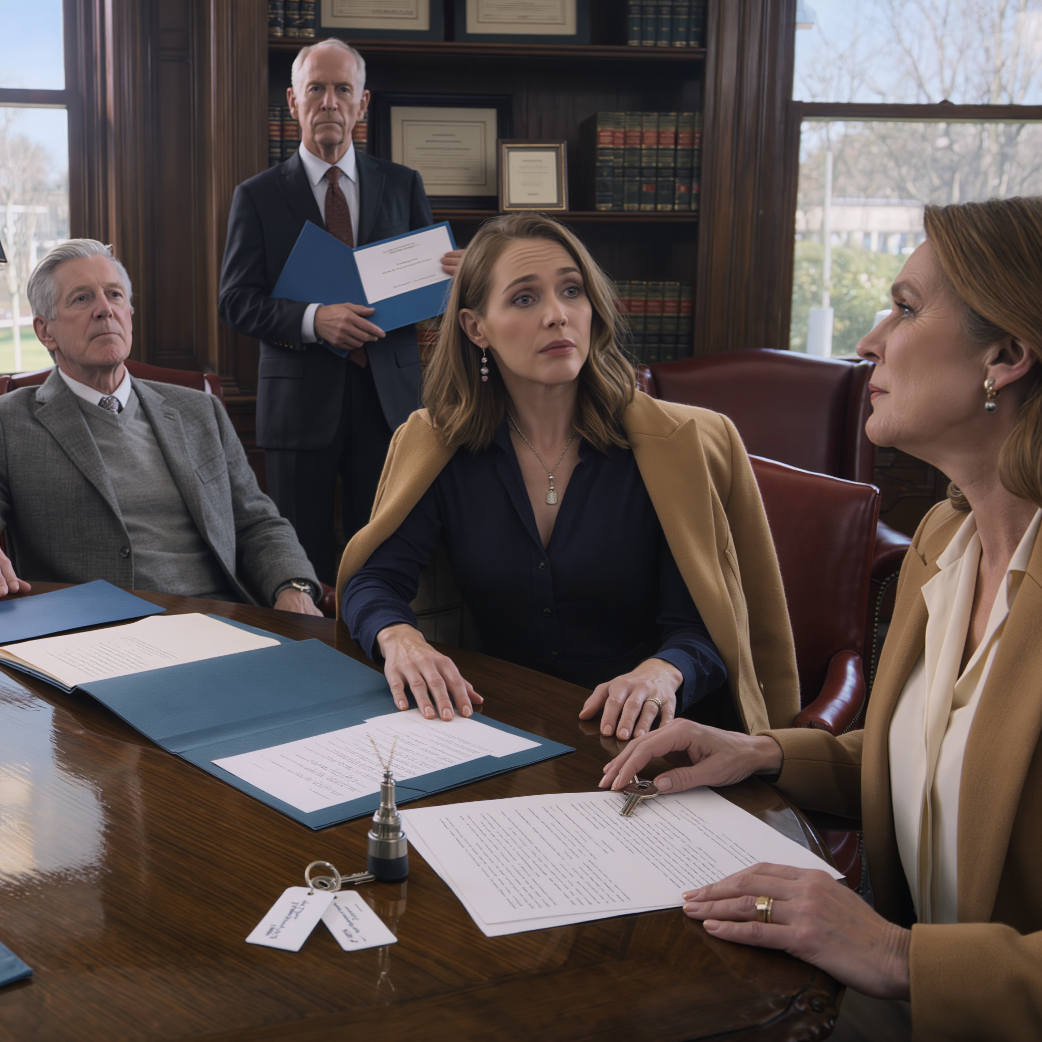 His conference room was lined with dark shelves, framed deeds, and old law books that made the air smell faintly of dust and leather. On the table sat a thick blue file and, beside it, two sealed envelopes.