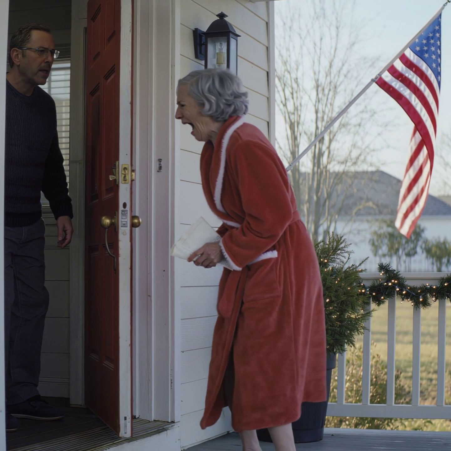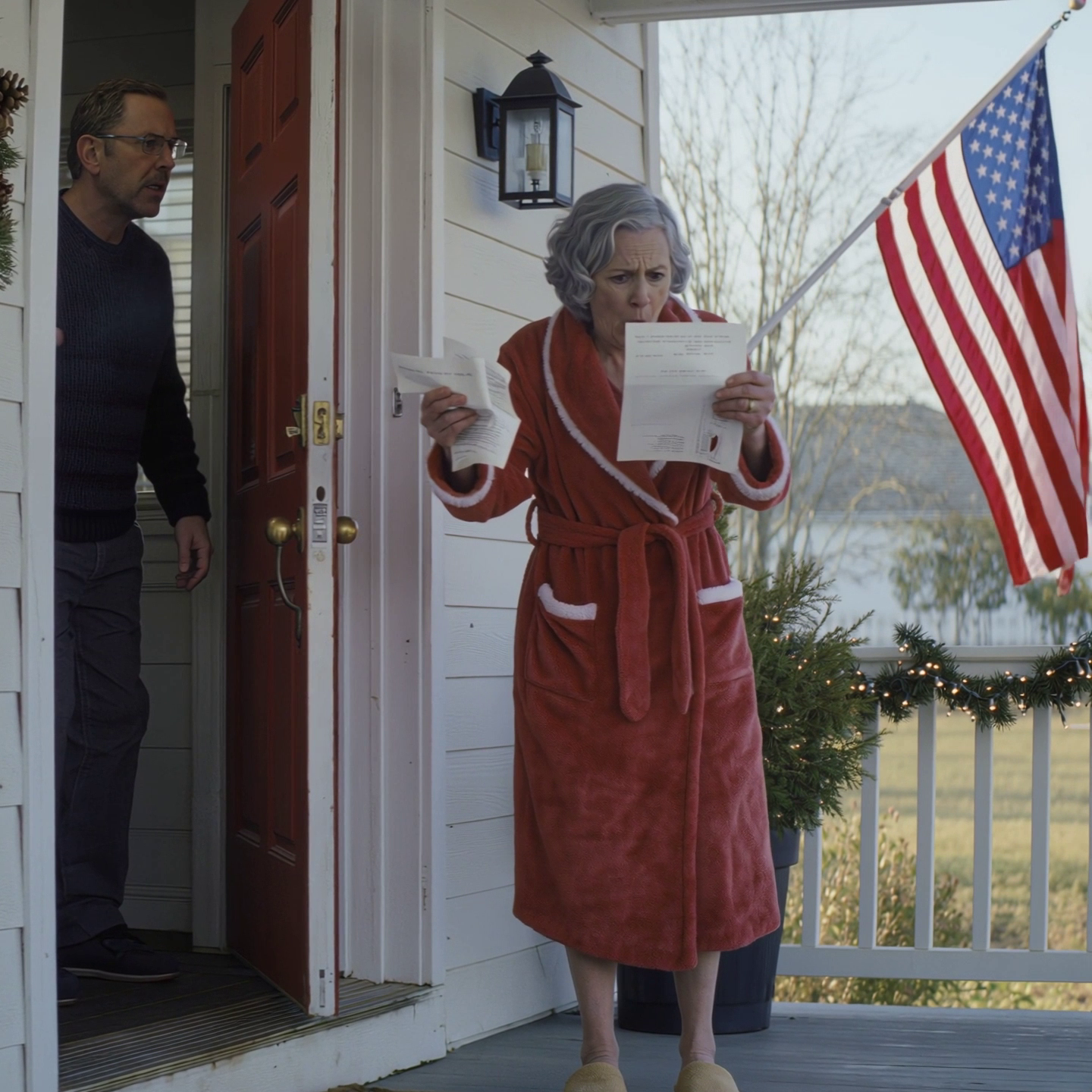 The door creaked. Carol stepped out in her fuzzy robe, hair crushed on one side from sleep, the satisfaction of an untroubled holiday still soft on her face. She picked up the envelope, tore it open, and her expression crawled through surprise into the place where rage lives. “Frank!” she screamed, voice splitting like a cable under tension. “Frank! Get out here! She’s throwing us out!”