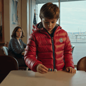 The airport atrium café was too warm for winter. Golden lights glowed above polished marble floors, and somewhere nearby a violin cover of…